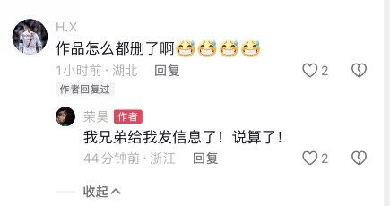 不外现在荣昊如故删除了指摘邓涵文的筹办实践,有网友盘考他为何删除,他则修起写说念:“我伯仲给我发信息了!说算了!”