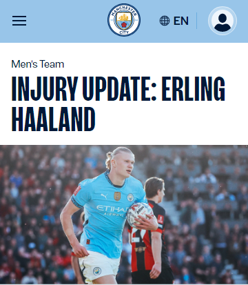 哈兰德在足总杯与伯恩茅斯的比赛中首发,但他下半场左脚被刘易斯-库克犯规后被压住,随后他撞到了告白牌上。