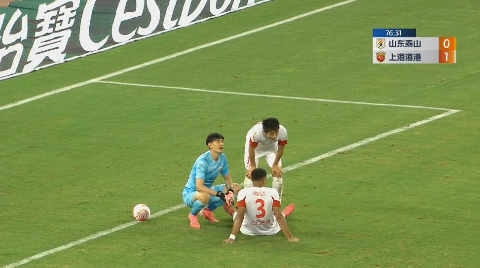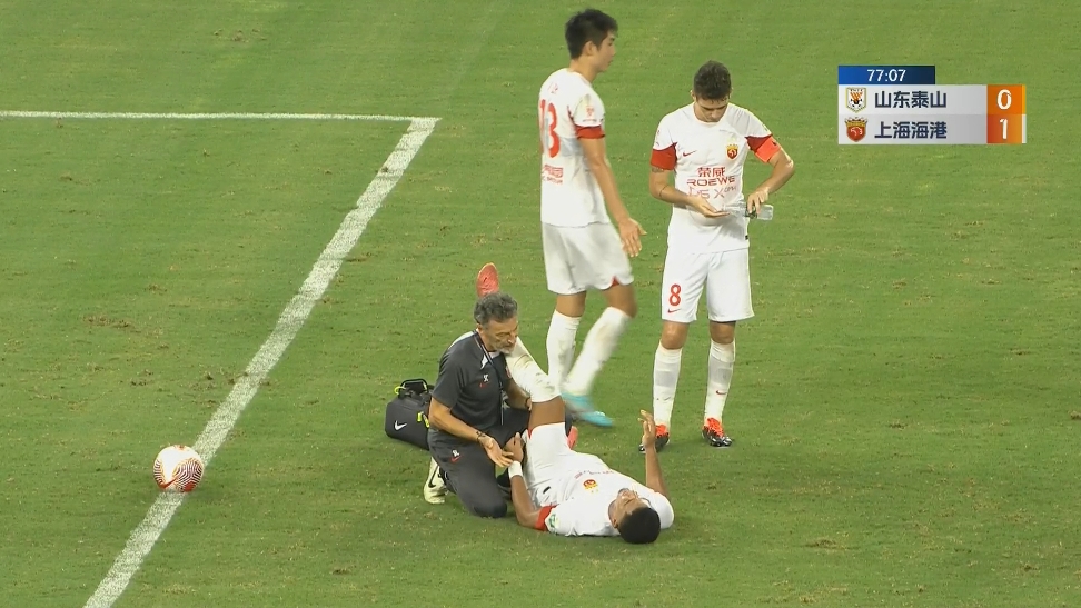 第77分钟,海港后卫蒋光太疑似受伤,坐在地上,队医进场支援后,蒋光太继续比赛。